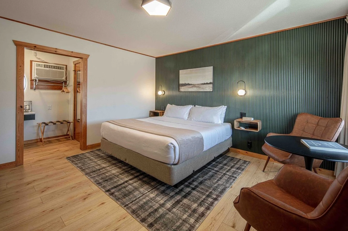 Our more spacious king room with parking right outside your door, you’ll find these rooms convenient for your stay in New Glarus. Sleeps 2 people and has all the amenities you’ll need with free wifi and a 55-inch Smart TV. 1 King bed.